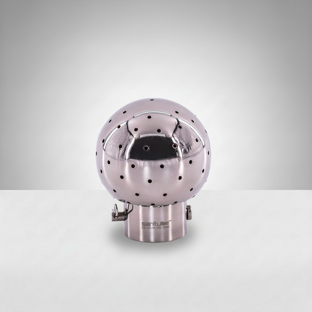 • Sanitube spray balls re stationary. They re designed to be mounted to tube or pipe.• All spray balls re 1 % T316L stainless steel, polished to 18 grit finish on the inside nd outside.